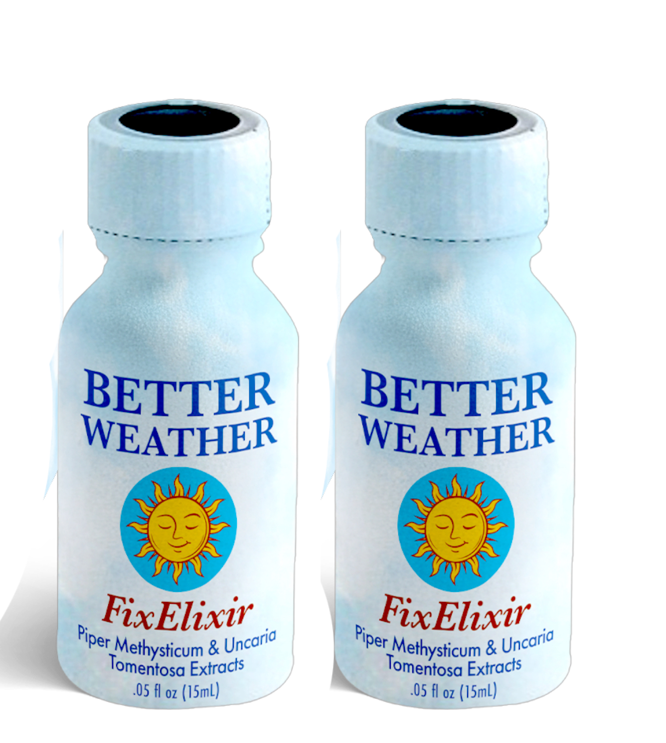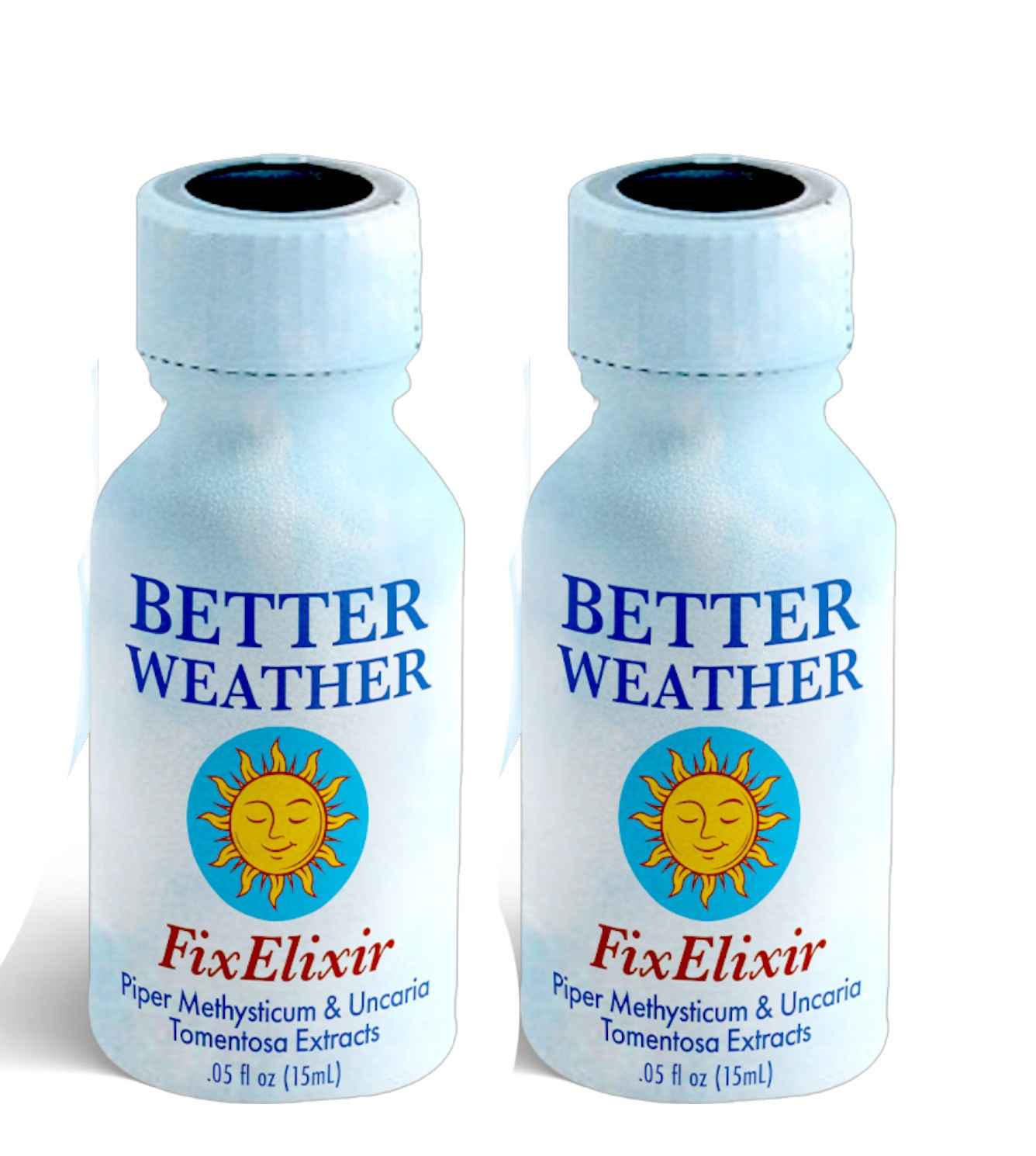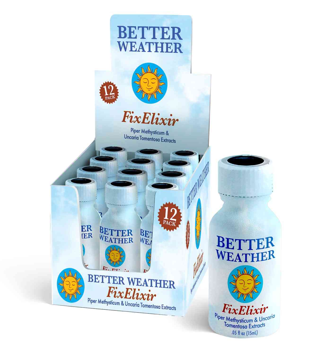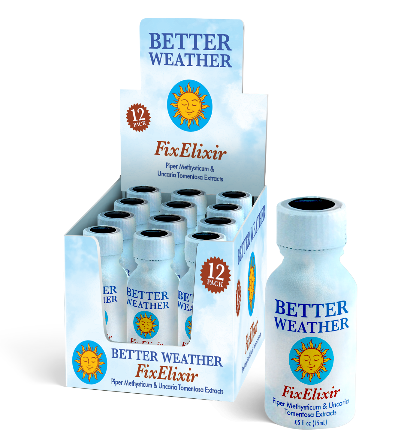Experience calm, clarity, and better vibes with Better Weather Fix Elixir — a unique blend crafted with Piper Methysticum and Uncaria Tomentosa Extracts. Each shot is designed to help you unwind, refresh your focus, and lift your overall mood. Whether you’re recovering from stress, long hours, or just need a quick reset, this elixir brings back your sunshine.