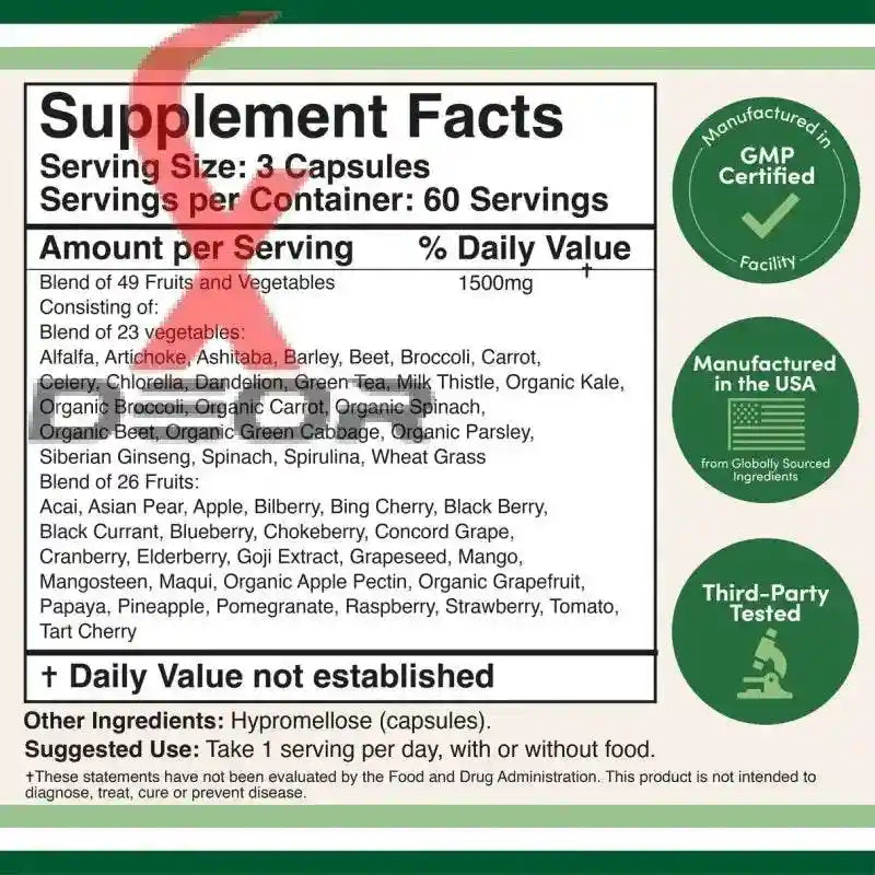 ✅ 1,500mg Serving of 49 fruits & vegetables