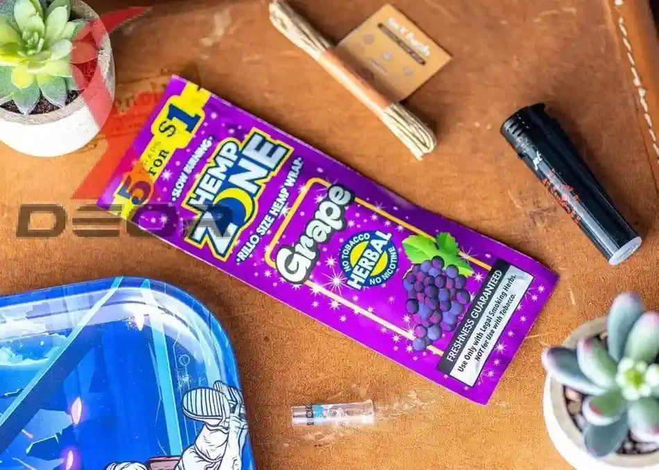 Enjoy the rich, fruity taste of Hemp Zone Organic Herbal Wraps in the classic Grape flavor. Made from 100% organic hemp, these wraps provide a tobacco-free, nicotine-free alternative with a smooth, slow-burning experience that enhances your favorite legal herbal blends.