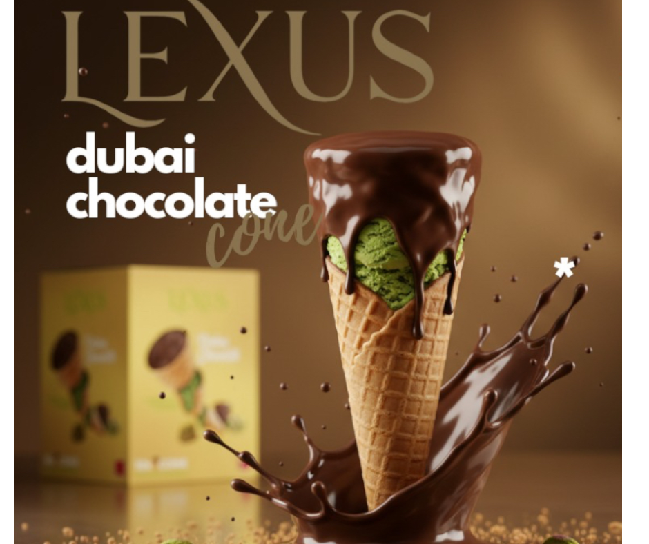 Savor every bite of indulgence with Lexus Dubai Chocolate Waffle Cones, where crispy perfection meets creamy richness. Each delicate mini cone is filled with a smooth chocolate center made with pistachio cream, tahini, and kadayif, delivering an irresistible balance of crunch and melt-in-your-mouth sweetness.